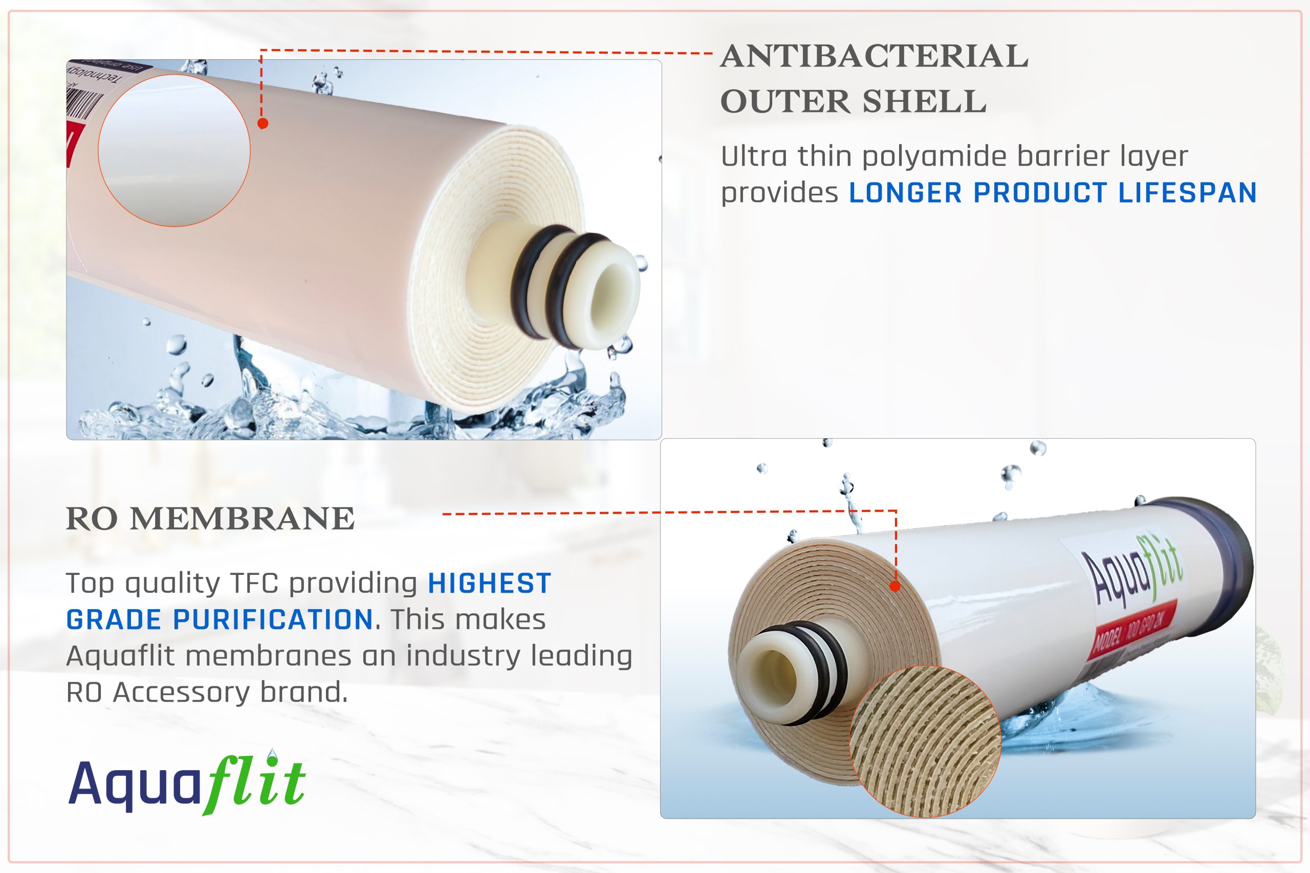 • HIGH-PERFORMANCE FILTRATION : Aquaflit membrane helps remove impurities from water up to .0001 micron. It efficiently removes of over 1000 contaminants from water including impurities, dissolved salts, heavy metals, and harmful contaminants, ensuring clean and safe drinking water.